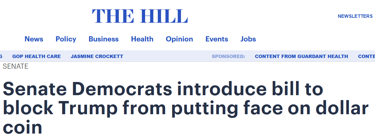 Инициатива направлена на блокирование возможного выпуска памятной долларовой монеты с изображением Дональда Трампа, передает издание The Hill.