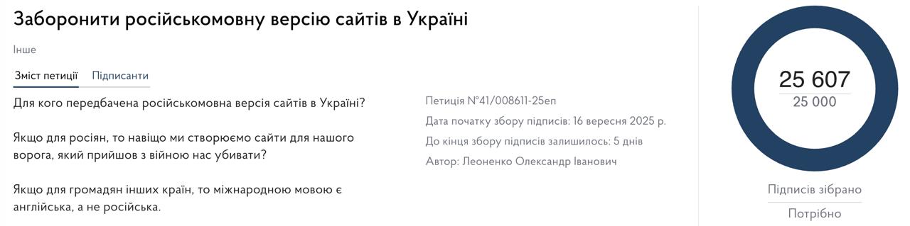 "Надо сказать, что эта дискуссия вокруг петиции, которая требует полного запрета русскоязычных версий сайтов, - это свидетельство или симптом нашей глубокой боли, которой страдает наше общество. Украинцы устали от этой тени колониального языка в публичном пространстве, стремятся очистить цифровую среду и хотят видеть онлайн ту Украину, за которую ежедневно борются наши защитники. Эти чувства нельзя игнорировать, они справедливы", - сказала Ивановская.