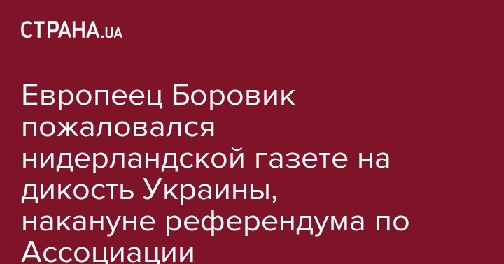 Депутат городского совета Одессы из команды председателя Одесской ОГА Саша Боровик накануне референдума в Нидерландах по вопросу соглашения об Ассоциации Украины и ЕС рассказал голландскому изданию о «неевропейской дикости» Украины. Об этом политик сообщил на своей странице в Facebook.