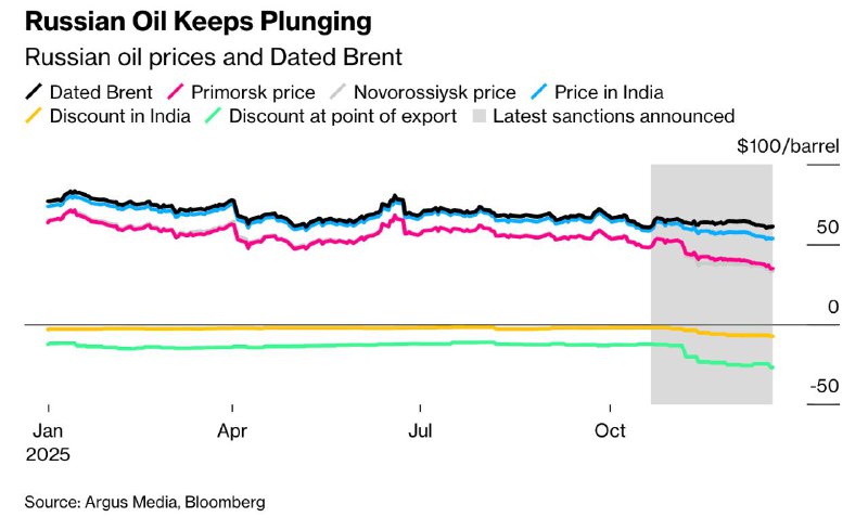 Из-за санкций США поставки российской нефти стали более сложными, поэтому Россия ввела масштабные скидки: около 27 долларов за баррель при отправке. Однако для Индии эта скидка уже снижается до 7,50 доллара, пока нефть доезжает в обход санкций.