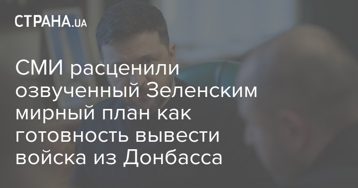 СМИ расценили озвученный Зеленским мирный план как готовность вывести войска из Донбасса