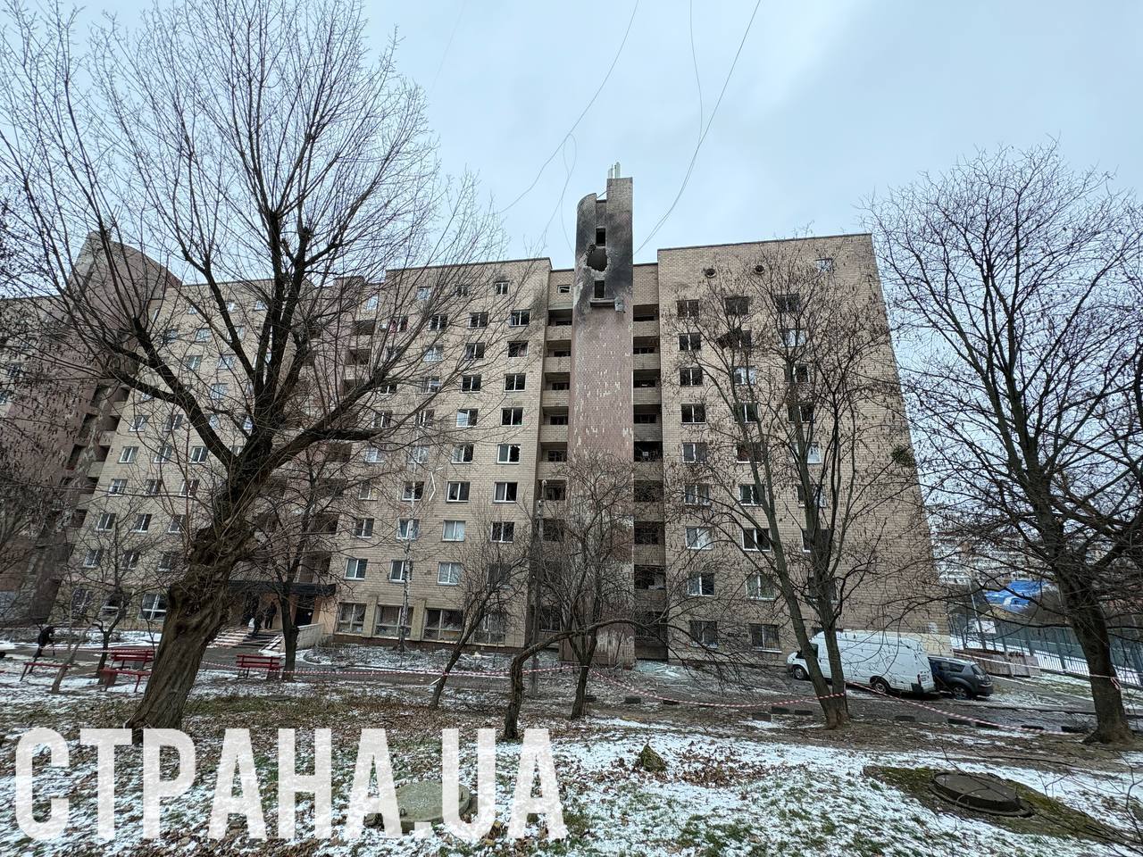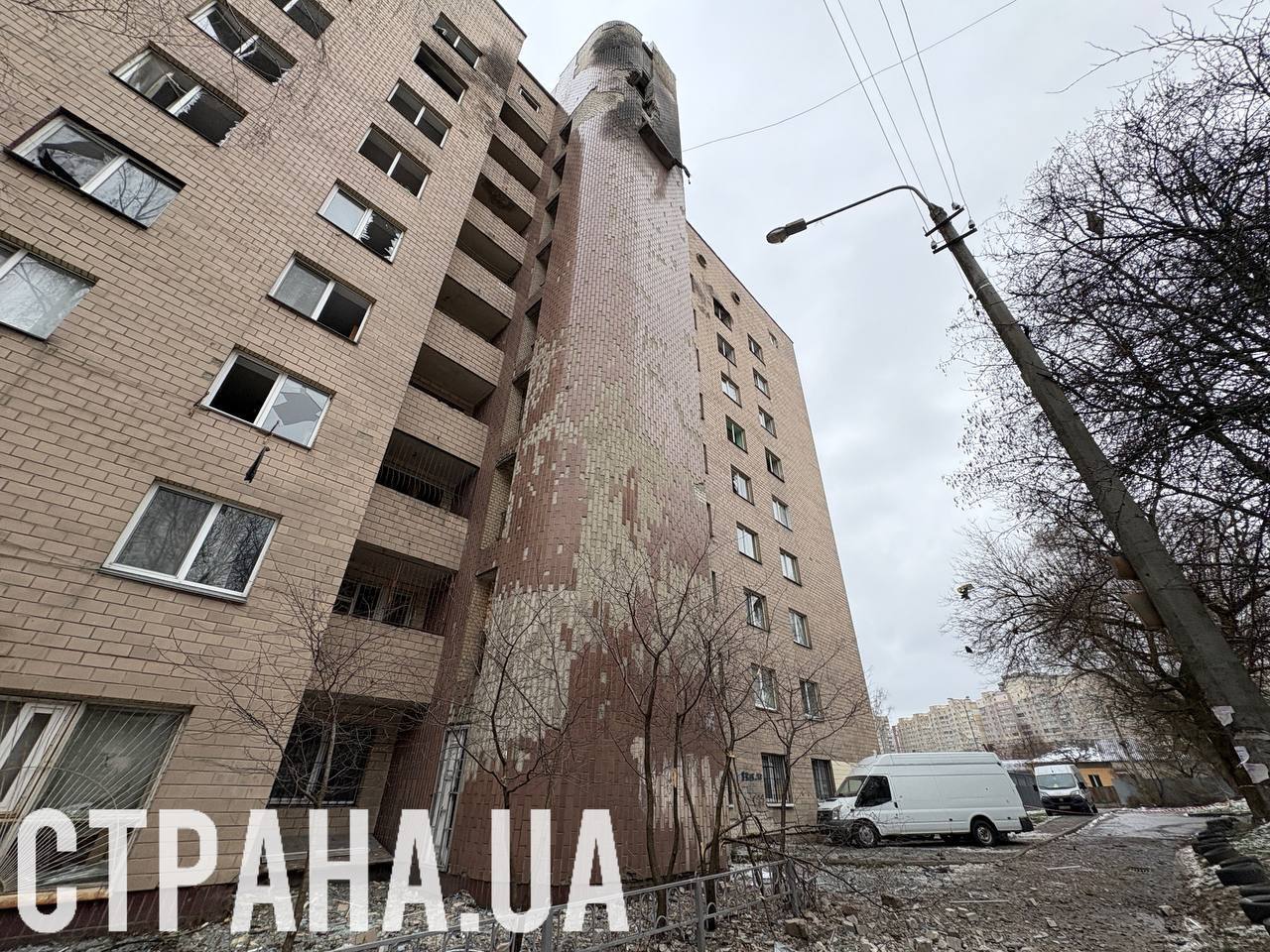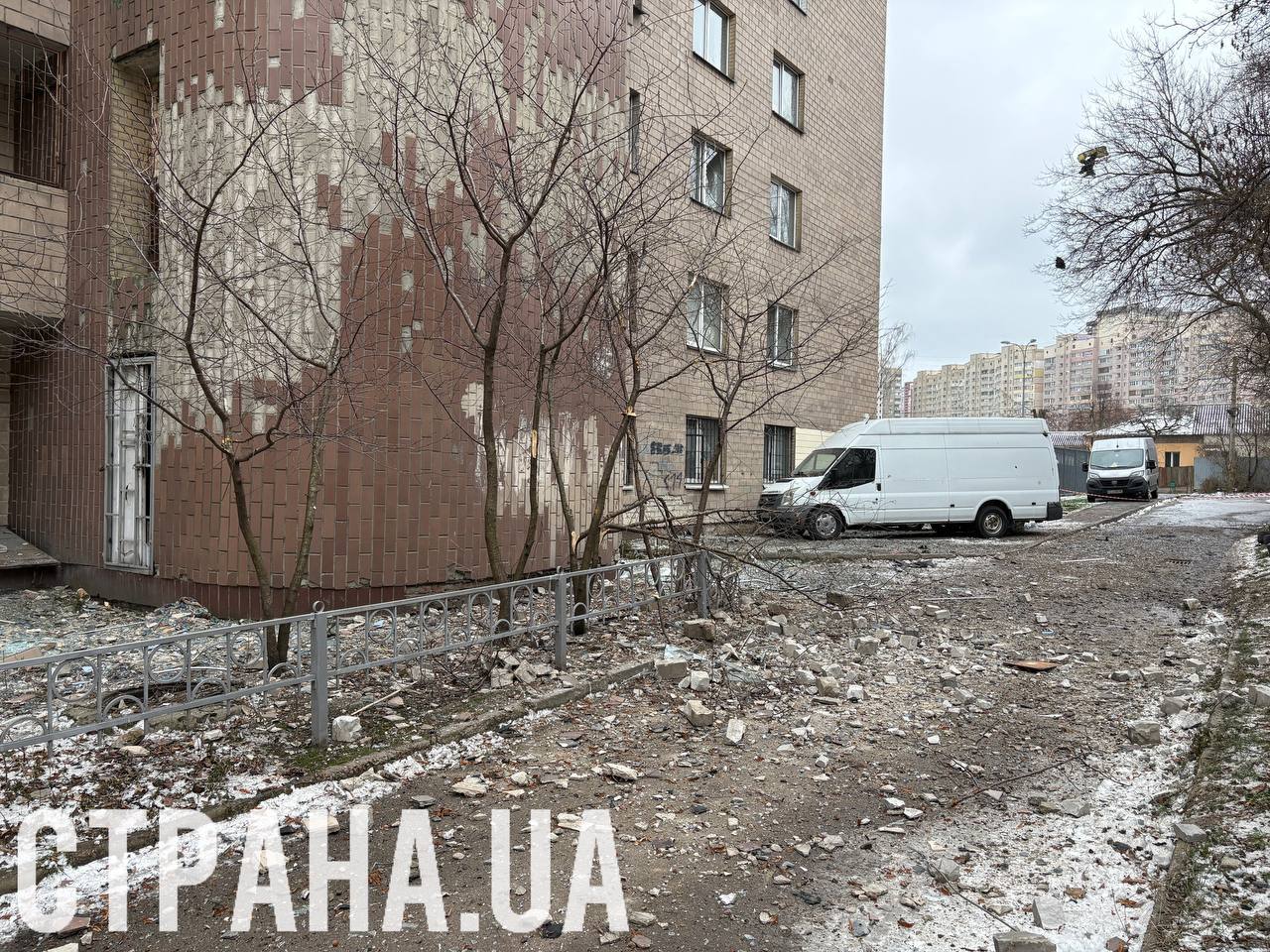 Последствия удара по общежитию НАУ. Фото: "Страна"