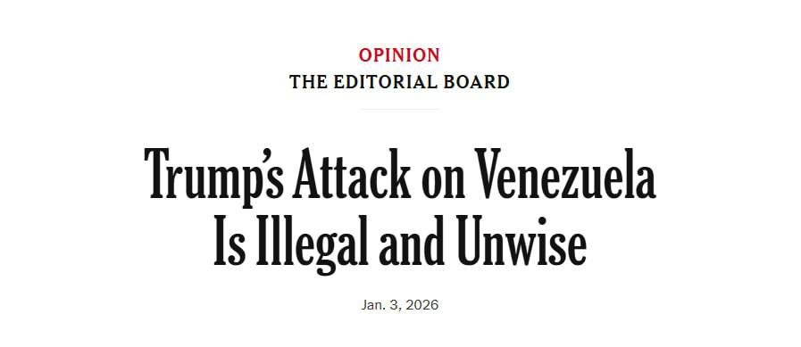 18:09 Редакция газеты The New York Times осудила атаку США на Венесуэлу и назвала его "незаконным и бездумным".