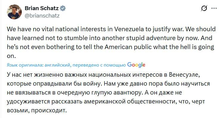 Сенатор-демократ Брайан Шац также раскритиковал решение президента США о начале военной операции в Венесуэле.