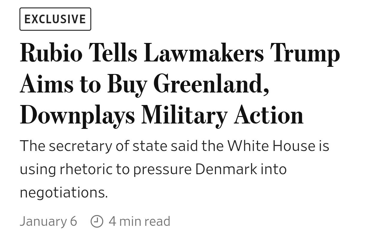 Госсекретарь США Марко Рубио уведомил членов конгресса, что Вашингтон нацелен на покупку Гренландии.