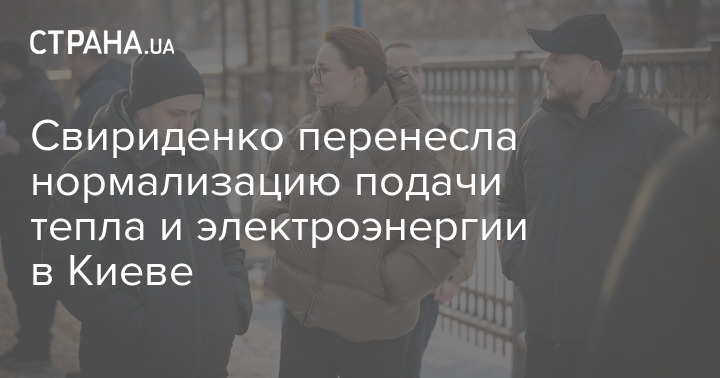 Премьер-министр Украины Юлия Свириденко, которая ранее обещала ко вчерашнему вечеру восстановление теплоснабжения в Киеве и переход на плановые графики отключения электроэнергии (ни того ни другого до сих пор не произошло), перенесла срок нормализации работы коммунальных служб на четверг, заявив, что для улучшения ситуации "нужно время".