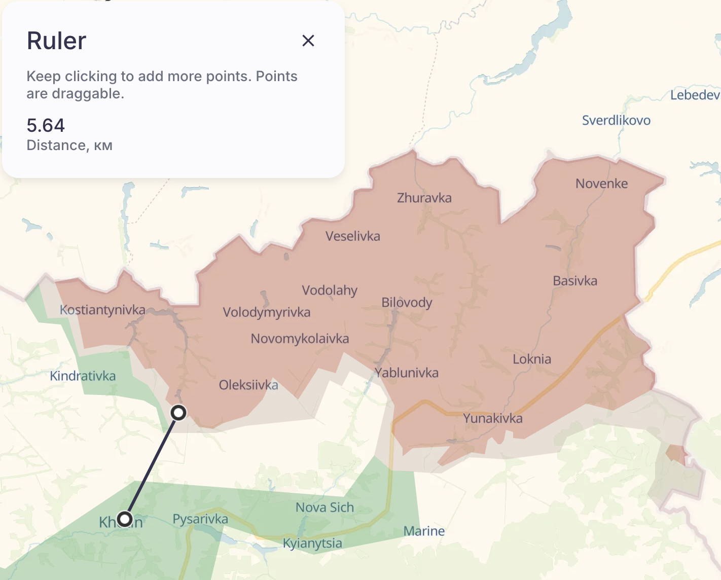 По карте DeepState Хотень находится на расстоянии чуть менее шести километров от линии фронта. Также паблик ранее сообщал о продвижениях россиян на этом участке.