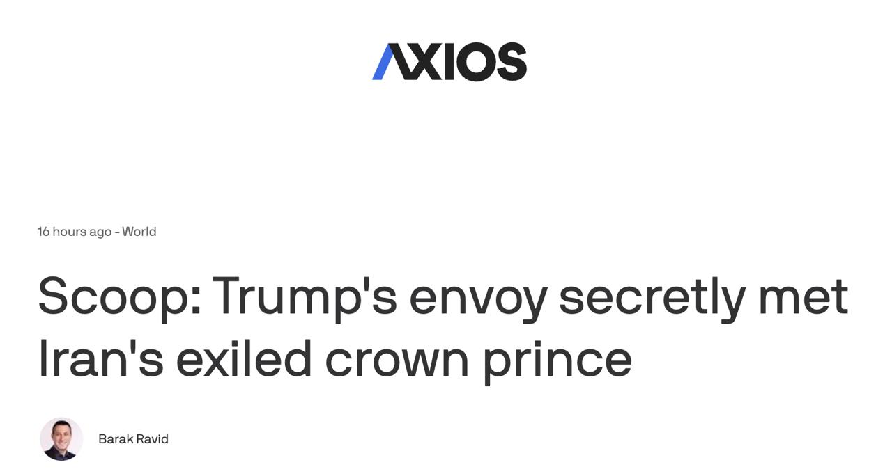 Он отметил, что Уиткофф тайно встретился с Пехлеви на выходных, чтобы обсудить протесты, охватившие Иран. Это была первая встреча на высоком уровне между иранской оппозицией и администрацией Трампа с начала протестов.