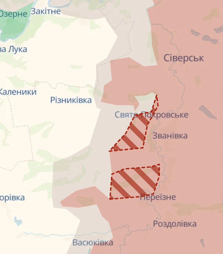 22:35 Российские войска продвинулись на двух участках к югу от Северска, сообщает украинский военный паблик Deep State.