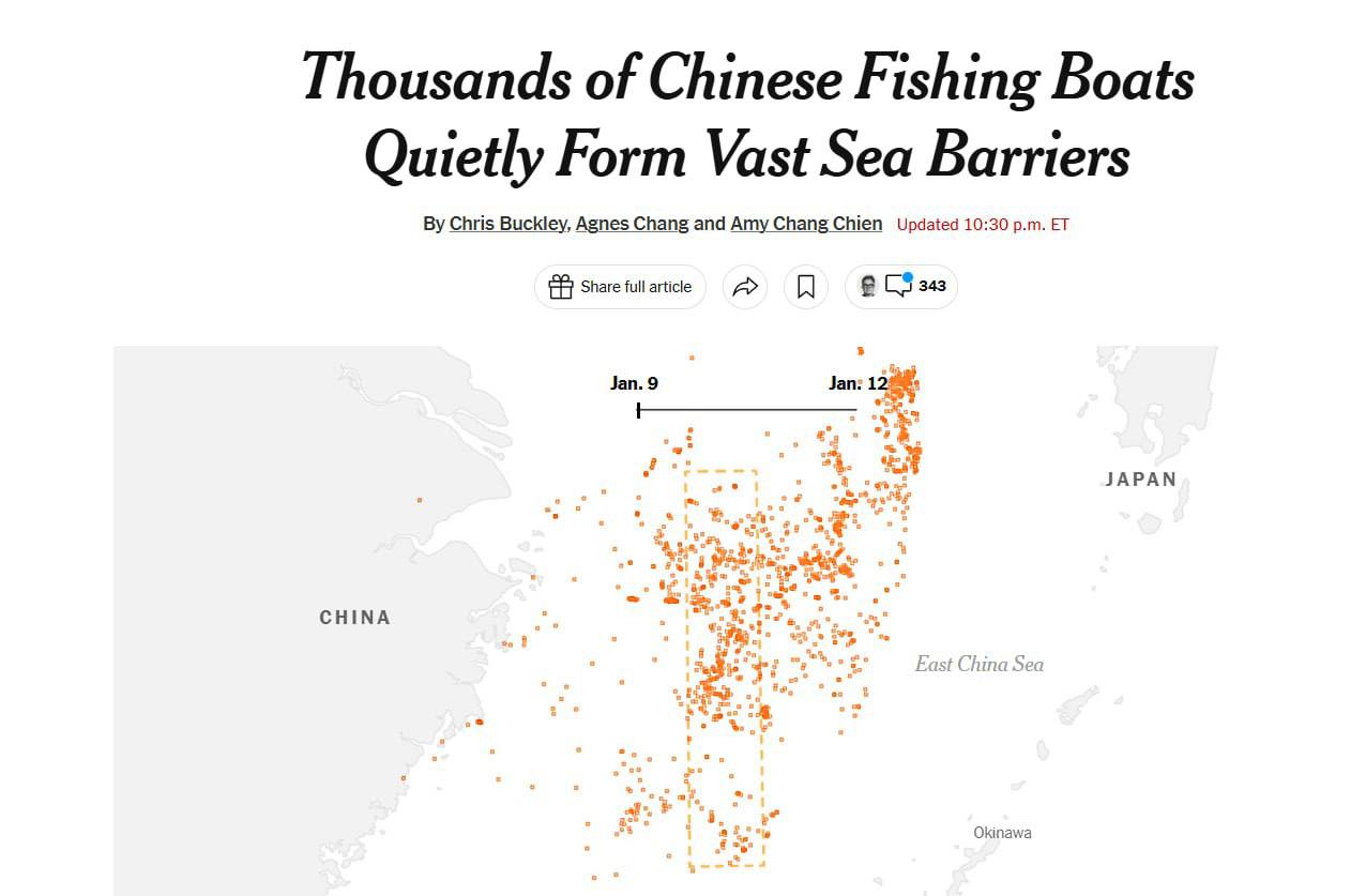 Кроме того, как пишет The New York Times, за последние две недели Китай дважды задействовал тысячи рыболовных судов для отработки блокады Тайваня.