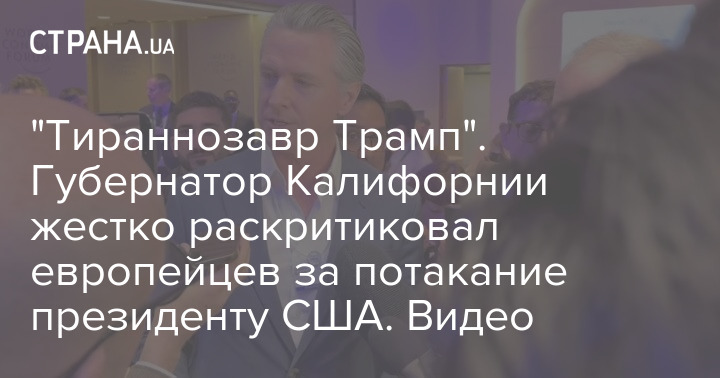 Губернатор Калифорнии Гэвин Ньюсом жестко раскритиковал европейцев за "потакание" президенту США, назвал их "жалкими", и призвал активнее сопротивляться "тираннозавру" Дональду Трампу.