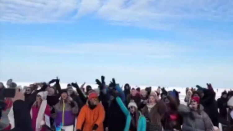 Последнее такое видео изображало групповые пляски на льду Киевского моря.