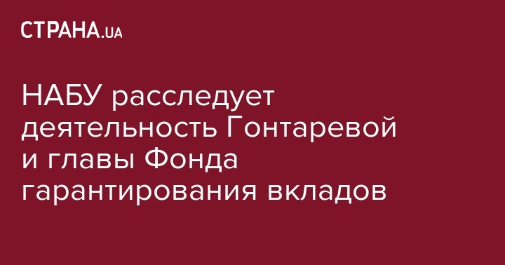 Национальное антикоррупционное бюро Украины (НАБУ) начало расследование в отношении главы Нацбанка Валерии Гонтаревой и других должностных лиц НБУ. Также начато следствие в отношении руководителя Фонда гарантирования вкладов физических лиц Константина Ворушилина.