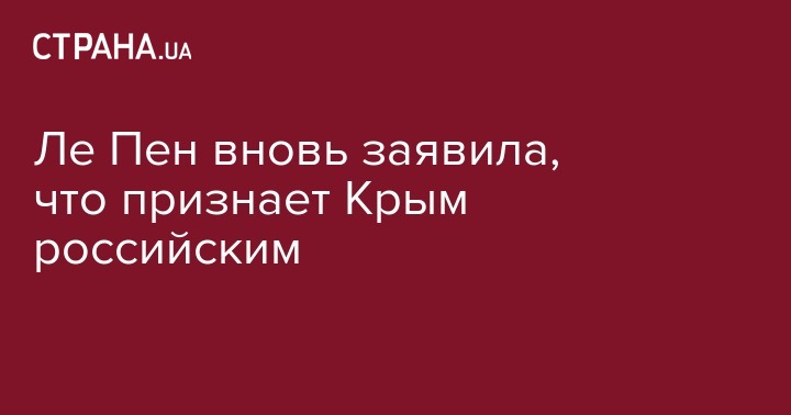"После референдума, который показал согласие народа присоединиться к России, я также признаю Крым частью РФ. Принадлежность Крыма к Украине была лишь административным вопросом советских времен, полуостров никогда не был украинским", - сказала Ле Пен.