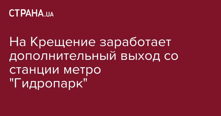 В четверг, 19 января в день Крещения (Богоявления) заработает дополнительный выход (восточный) со станции Киевского метрополитена "Гидропарк".