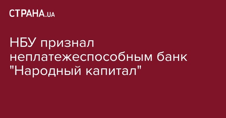 Национальный банк Украины признал НК Банк (Банк "Народный капитал", Киев) неплатежеспособным. Об этом сообщает пресс-служба регулятора.