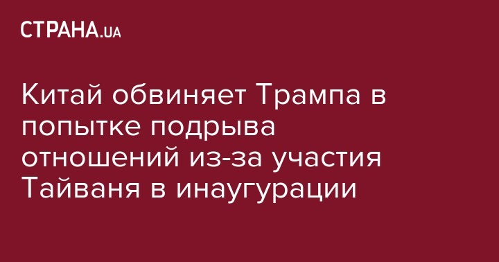 В пятницу, 20 января официальный представитель МИД Китая Хуа Чуньин обвинила президента США Дональда Трампа в попытке подрыва отношений с КНР.  Так жестко китайские дипломаты отреагировали на участие в церемонии инаугурации нового хозяина Белого дома представителей Тайваня.