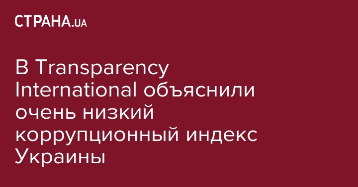 "Количество баллов, которые набрала Украина - 29 баллов, 131 место - это чрезвычайно низкий показатель. Украина входит в число стран, которые больше всего страдают от коррупции; в 50 стран, где коррупция, ее уровень, ее распространение чрезвычайно влияют на развитие государства. Если взять показатели наших соседей, то мы на одном уровне с Россией и Казахстаном. Другие страны, которые также набрали 29 баллов, - это Иран и Непал", - сказал Ярослав Юрчишин, уточнив при этом, что ключевыми в рейтинге являются баллы, а не места, которые меняются не только от количества баллов, но и стран.