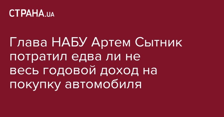 Председатель Национального антикоррупционного бюро Артем Сытник купил автомобиль KIA Sportage за 802 560 гривен. Соответствующую информацию он указал в своей декларации.