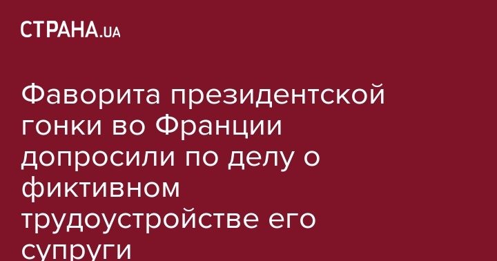 Как сообщала "Страна", прокуратура начала расследование в отношении жены фаворита президентских выборов во Франции. Фийон считается лидером президентской гонки во Франции. Он - член Союза за народное движение. Также политик неоднократно высказывался за сокращение бюджетных расходов.