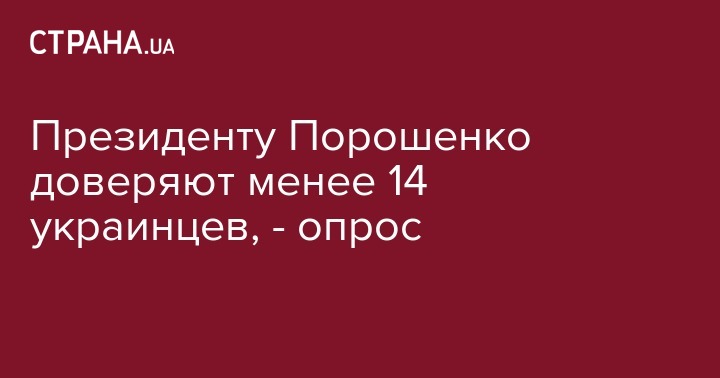 Президенту Украины Петру Порошенко доверяют менее 14% украинцев. Об этом свидетельствуют результаты опроса, проведенного Киевским международным институтом социологии.
