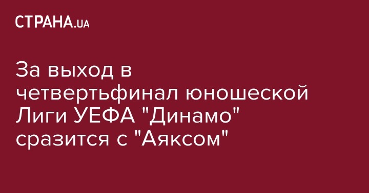 Киевское "Динамо" (U-19) узнало своего соперника в 1/8 финала турнира, которым стал амстердамский "Аякс". Об этом сообщает официальный сайт киевлян.