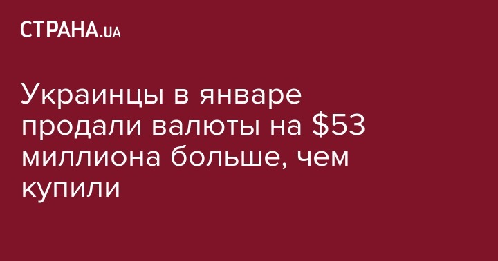 Чистая продажа (превышение продажи над покупкой) наличной иностранной валюты населением Украины через банковскую систему в январе составила 53,4 миллиона долларов.