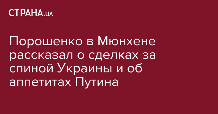 Порошенко в Мюнхене рассказал о сделках за спиной Украины и об аппетитах Путина
