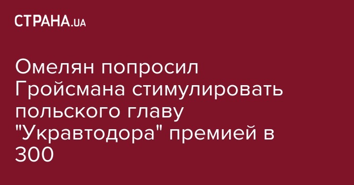 Министр инфраструктуры Владимир Омелян просит Кабинет Министров назначить исполняющему обязанности председателя Государственного агентства автомобильных дорог "Укравтодор" Славомиру Новаку стимулирующие выплаты в размере от 200% до 300% должностного оклада с 1 января 2017 года. Об этом говорится в обращении Омеляна к премьер-министру Владимиру Гройсману, текстом которого располагают Украинские новости.