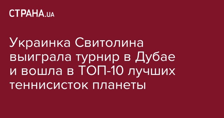 Украинская теннисистка Элина Свитолина выиграла престижный международный турнир серии WTA в Дубае. Об этом сообщает пресс-служба Национального олимпийского комитета Украины на своей странице в Facebook