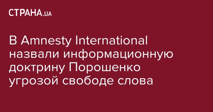 Исполнительный директор правозащитной организации Amnesty International Татьяна Мазур раскритиковала информационную доктрину Петра Порошенко, которая регламентирует мониторинг средств массовой информации и общедоступных ресурсов Интернета для выявления информации, запрещенной в Украине. Ее слова приводят "Украинские новости".