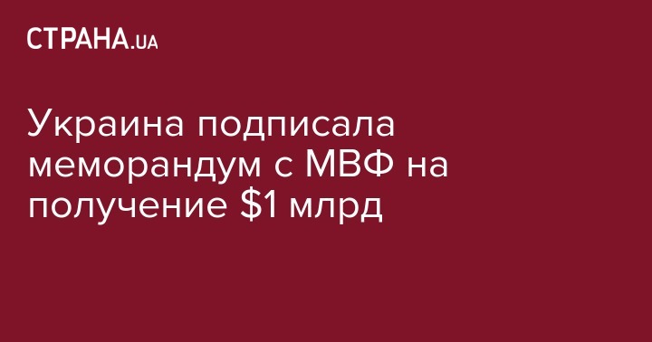 Сегодня Украина подписала обновленный меморандум о сотрудничестве с Международным валютным фондом о получении транша в $1 млрд. Об этом пишет агентство Reuters, ссылаясь на свои источники в Национальном банке Украины.