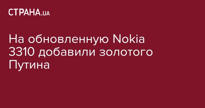 Российско-итальянская ювелирная компания Caviar представила свою версию обновленного мобильного телефона Nokia 3310 с выгравированным из золота портретом президента России Владимира Путина. Об этом сообщает hi-tech.mail.ru.