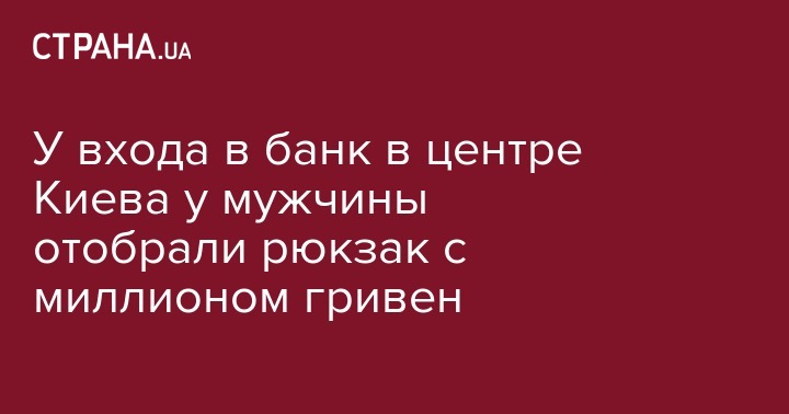 У входа в банк в центре Киева у мужчины отобрали рюкзак с миллионом гривен