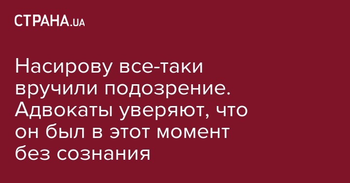 Правда, его адвокаты заявили, что в это время он был без сознания. После этого Насирова вывезли из "Феофании" на носилках. По словам врачей, у Насирова диагностировали инфаркт.
