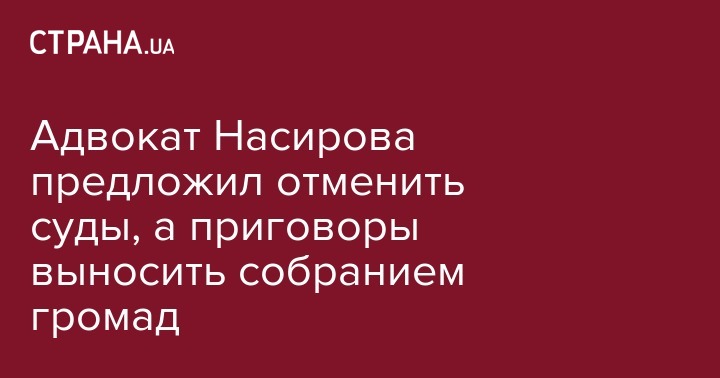 Адвокат Насирова предложил отменить суды, а приговоры выносить собранием громад