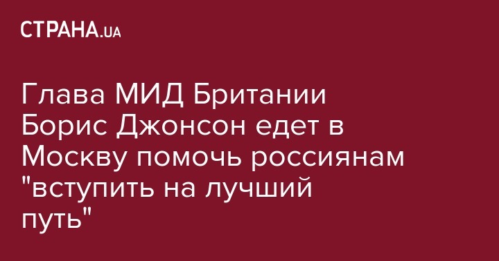 Глава МИД Британии Борис Джонсон едет в Москву помочь россиянам "вступить на лучший путь"