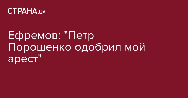 "Нужно быть совсем наивным человеком, чтобы не понимать, что мое противоправное задержание и последующий арест был им (Петром Порошенко. - Прим. Ред.) одобрен. Я слишком хорошо знаю систему, чтобы верить в обратное", - рассказал Ефремов.
