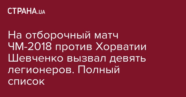 Главный тренер сборной Украины Андрей Шевченко вызвал для участия в сборах, предшествующих отборочному матча чемпионата мира-2018 года против сборной Хорватии, девять украинцев, которые выступают в иностранных чемпионатах.