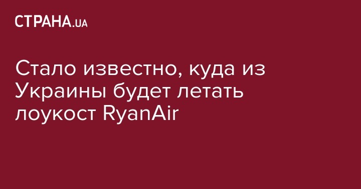 Стало известно, куда из Украины будет летать лоукост RyanAir