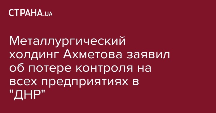 Металлургическая группа "Метинвест" заявляет об утрате контроля над всеми своими предприятиями на временно не контролируемых территориях Донецкой и Луганской областей. Об этом говорится на сайте компании.