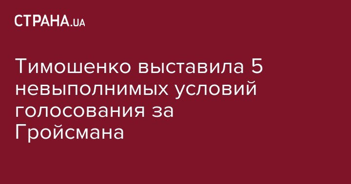 Тимошенко выставила 5 невыполнимых условий голосования за Гройсмана