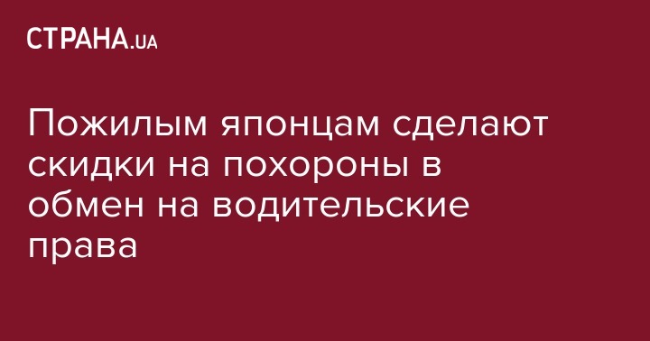 В Японии для людей преклонного возраста сделали заманчивую акцию. В обмен на водительское удостоверение им предлагают скидки на похороны. Об этом сообщает ВВС.