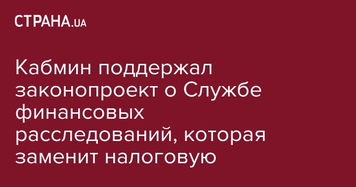 Кабинет министров на заседании в среду предварительно одобрил законопроект о создании службы финансовых расследований, которая должна заменить налоговую полицию, а также направил документ в Национальный совет реформ при президенте страны для формирования окончательной редакции. Об этом пишет "Интерфакс-Украина".