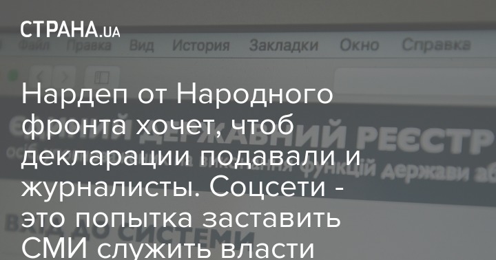 Нардеп от Народного фронта хочет, чтоб декларации подавали и журналисты. Соцсети - это попытка заставить СМИ служить власти