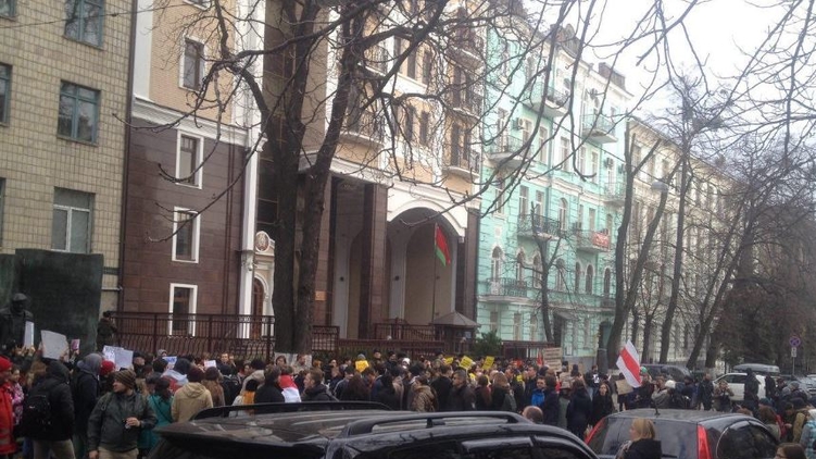 У посольства Белоруссии в Украине собрался митинг в поддержку задержанных в Минске
