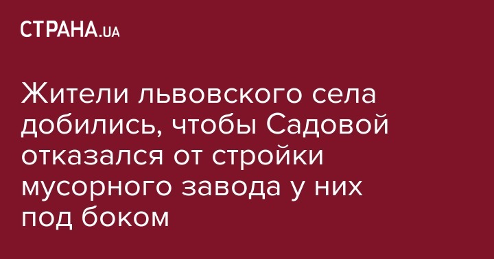 Жители села Добряны во Львовской области выступили резко против строительства у них мусороперерабатывающего завода, как хотел сделать мэр Львова Андрей Садовой. Об этом он рассказал сам, сообщает пресс-служба Львовского горсовета.