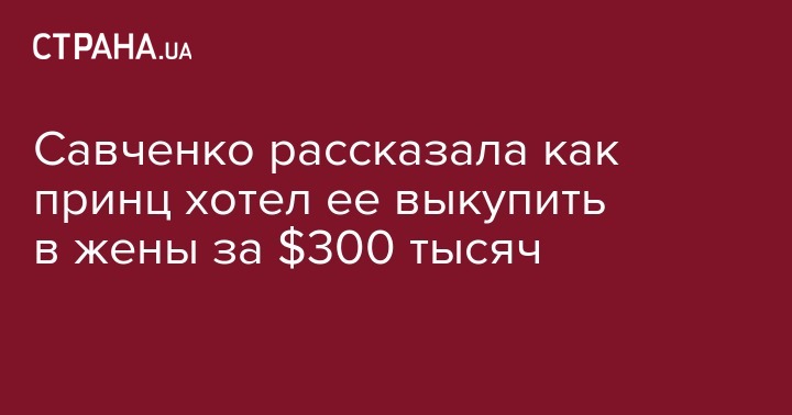 Савченко рассказала как принц хотел ее выкупить в жены за $300 тысяч