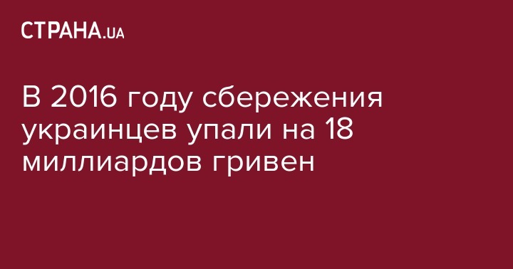 Сбережения украинцев в 2016 году сократились на 18,4 млрд гривен, в то время как номинальные и реально располагаемые доходы населения Украины выросли на 15,4% и 0,3% соответственно.