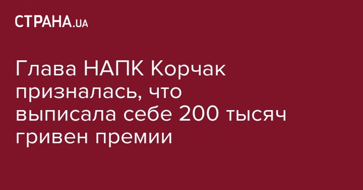 Глава Национального агентства по предотвращению коррупции Наталья Корчак заявила, что размер ее премии составил 200 тысяч гривен. Об этом Корчак сказала, выступая на трибуне парламента.
